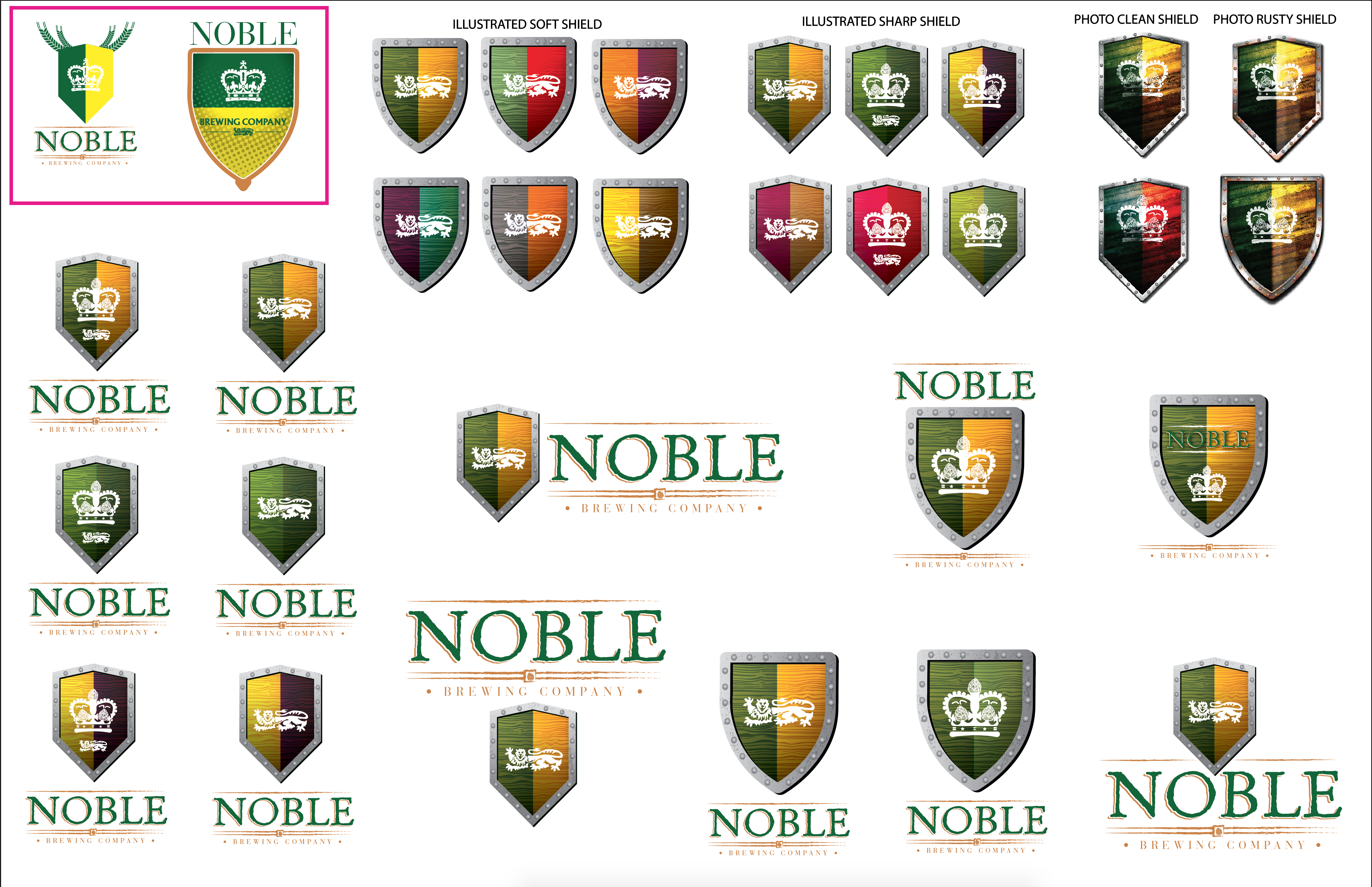 We take those notes and we rework those designs that were greenlit and delete the ones that weren’t. Rinse and repeat for Rd 2 & Rd 3. It’s at this stage where you should find yourself with a finalized logo, and it will then be put through for finishing so that your logo package can be sent to you. Depending on your agreement terms, you may be asked to pay 50% up front and the other 50% 30-60 days after you’ve received the logo package. As a visual representation, please look at Noble v1 – v5.