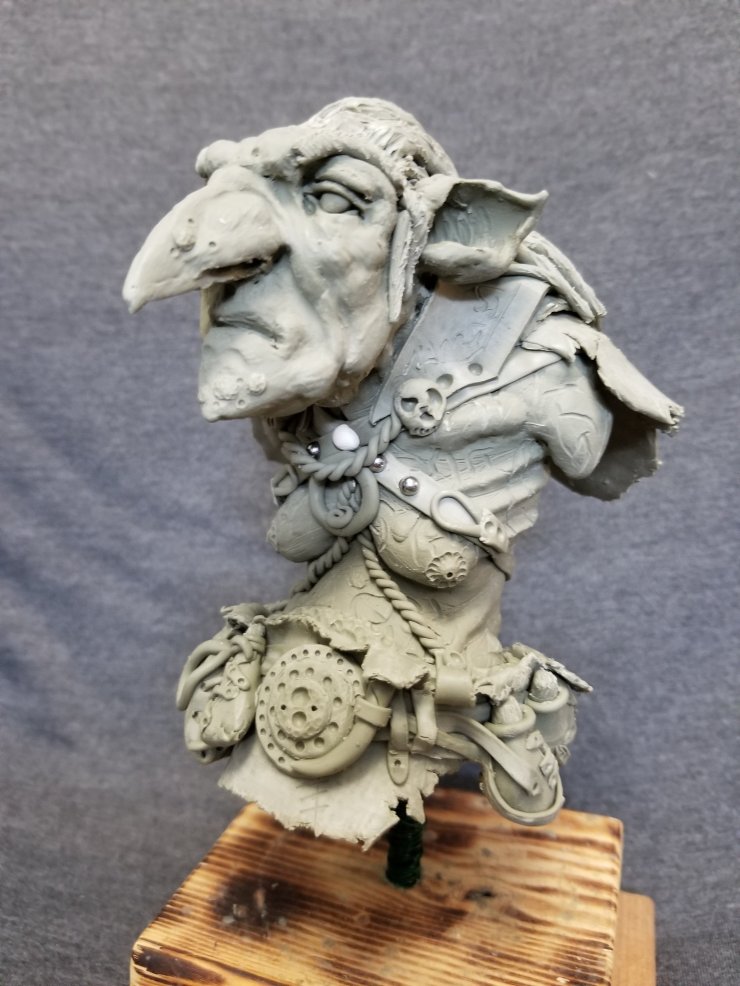 Have been fortunate enough to have had the time between some early design projects to sculpt a few items this year. Although I did not finish my Hulk until early January I will consider it a part of my 2018 slate. So far this year I have done a head study, a swamp witch and I just completed the sculpting portion of my 2019 Markham Fair painted ceramics entry. You don’t get any extra points for sculpting it, just the paint job. I have enough time that if I find an alternative idea to pursue that I can put my orc warrior 2.0 on the shelf and leave it be.