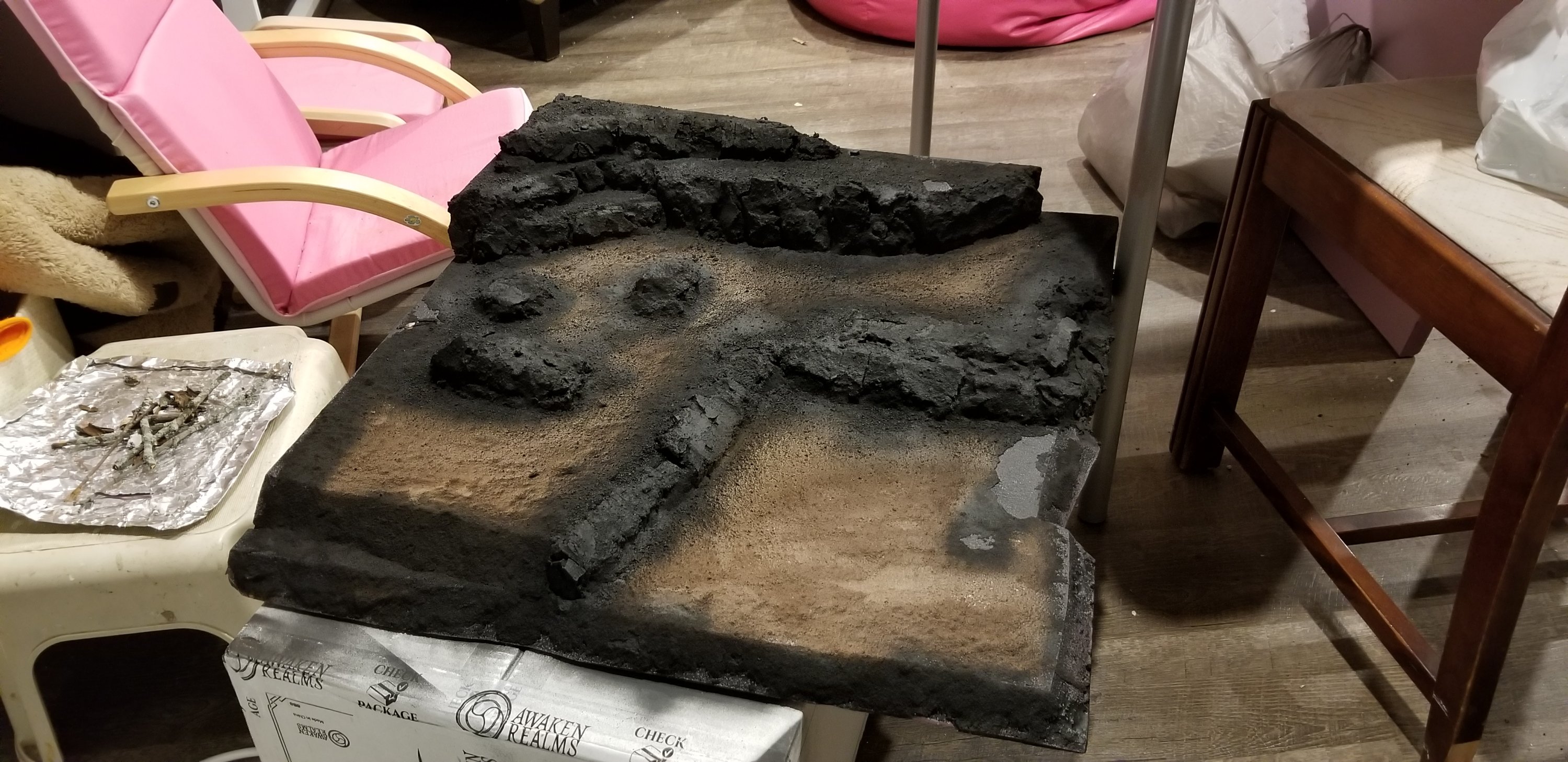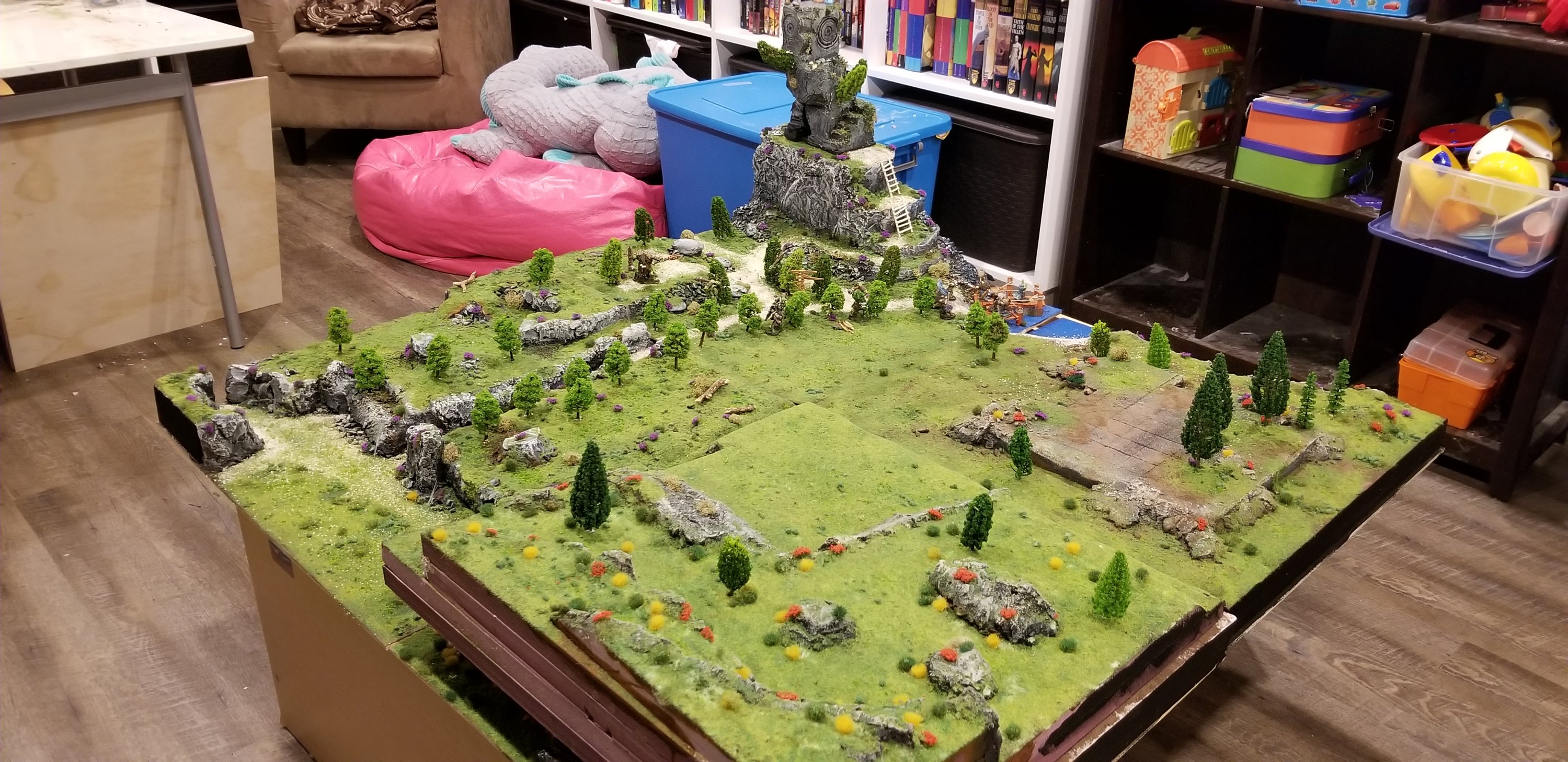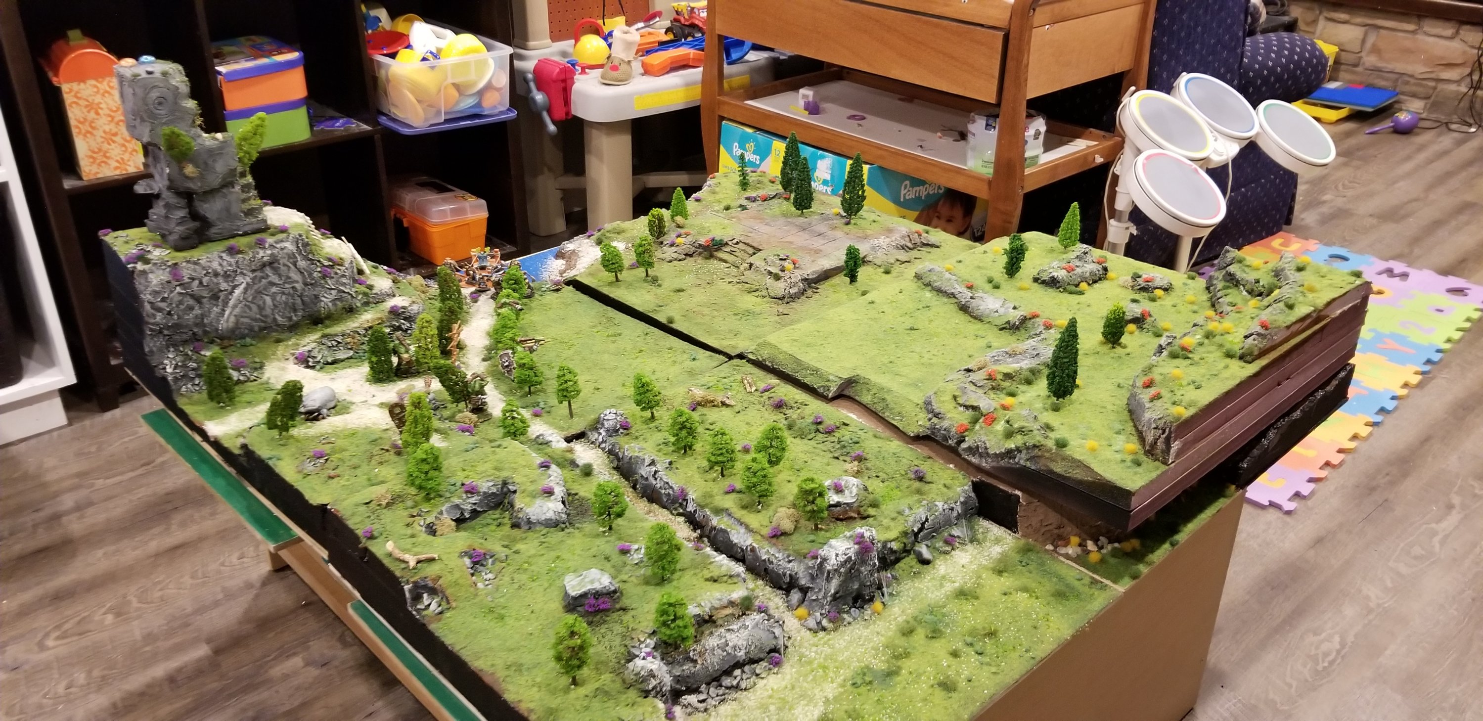 I am happy with how they turned out. I might have miscalculated the foam alignments, but as I built them all separately I am not surprised by this at all. I look forward to many hours of story telling, make believe and quality time with my girls playing war games and D&D on these things. I’m in the process of building us each our own dice trays and at least one dice tower. In a few years I’d actually love to build a proper table (a nice one with hand cut joinery) for games that can be left set up. Now I need to finish reading my manuals and handbooks, nerf some stories or do up some homebrew adventures.