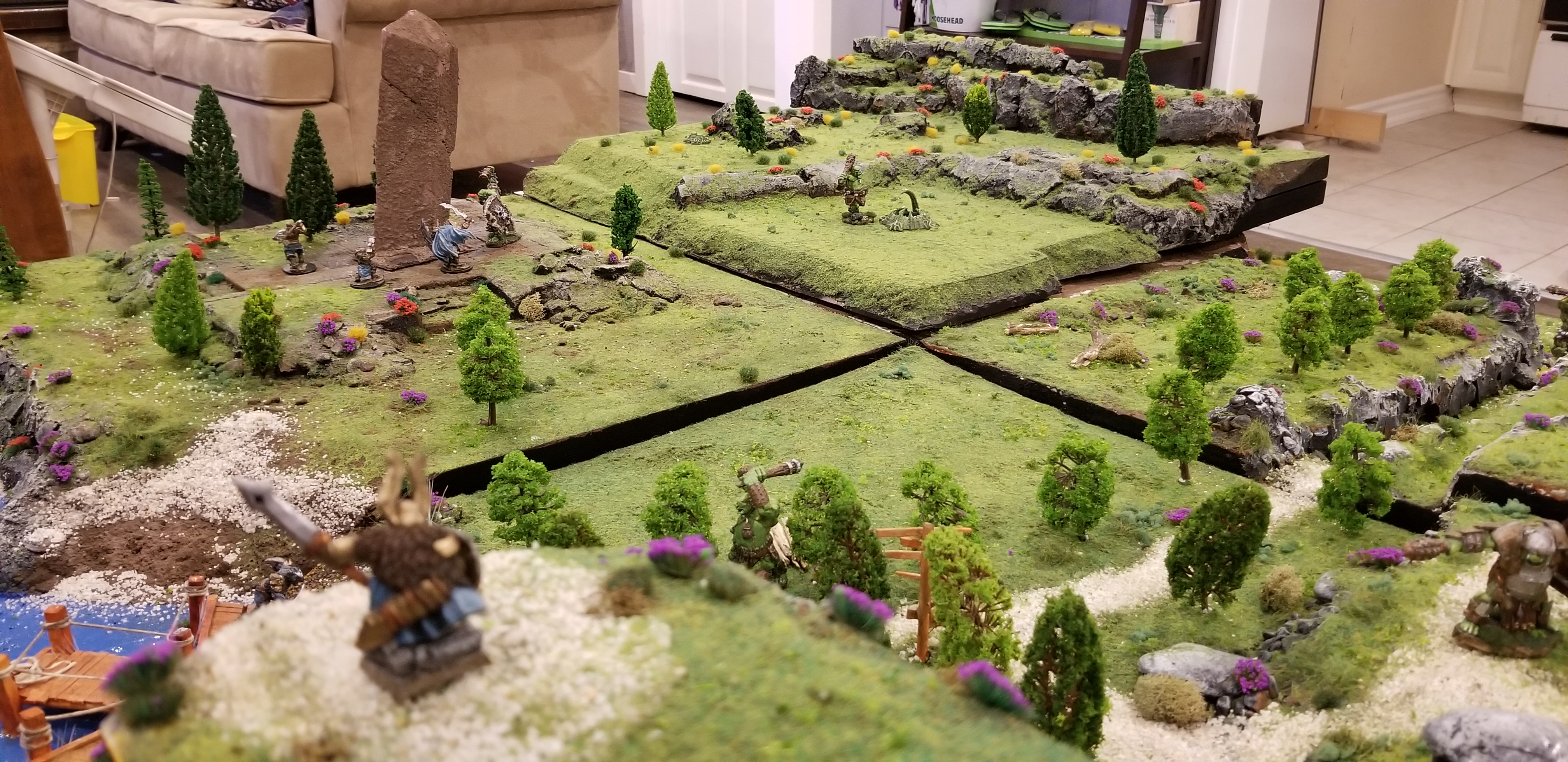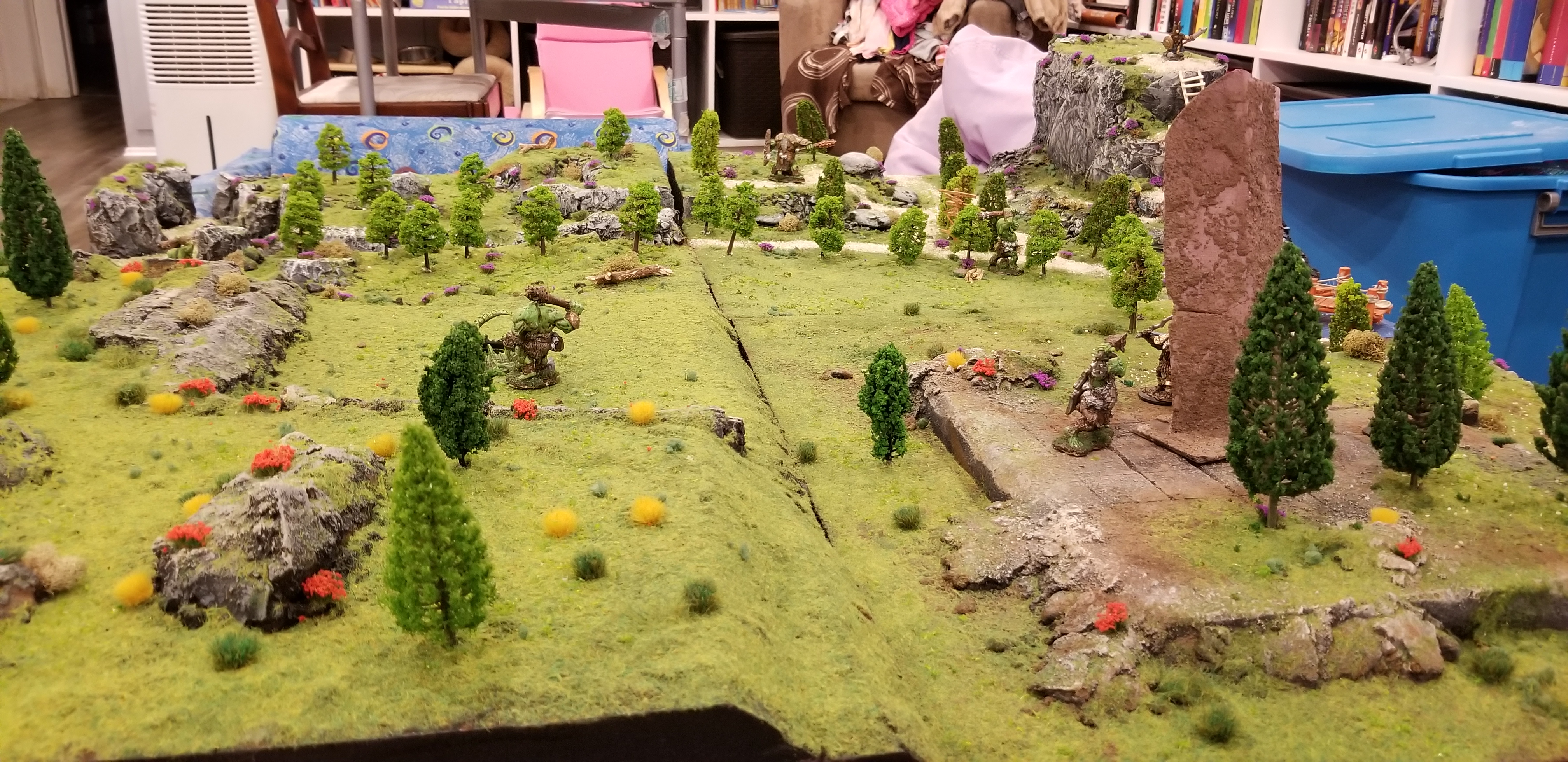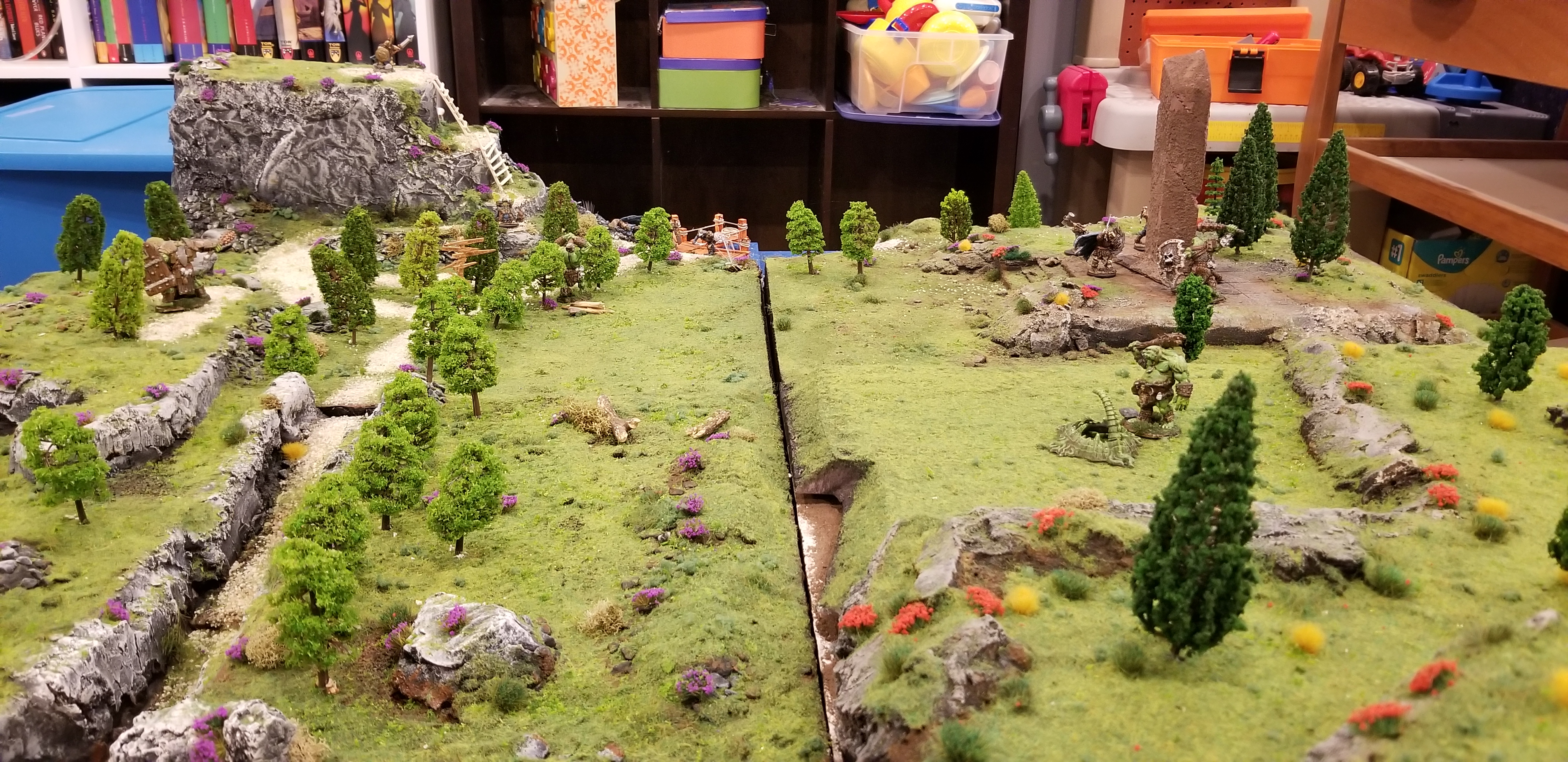 Earlier this year I built a series of four terrain panels, each measuring two feet by two feet, and almost ten inches tall on the highest elevation. I was originally going to build just one, but I had such a good time making the first that I decided to go ahead and all three more to it to make a larger gaming table for D&D or war gaming. It’s not something I have done before, but it sure was a lot of fun. I can see why people get addicted to terrain building and 3d printing and such. It was a wonderful creative outlet, and I wish I had the room to use and store an eight foot gaming table with modular mix and match panels. I would love to build a proper wharf, a seaside fishing town, a mountain pass, ancient ruins, a meandering river bed, a proper cliff face and waterfall, try water effects, real rock moulds with plaster of paris etc… a hot wire cutter, a grass applicator and those uber swanky high class model train trees too. There are just so many things you could do with the time and resources to tackle them. My only hope is to help my kids build dioramas for elementary school projects! Or try to build a bunch of much smaller and more compact elements, like castle walls, or ruins or individual hovels & town houses. I’d love to see any of your work if you have images handy!.