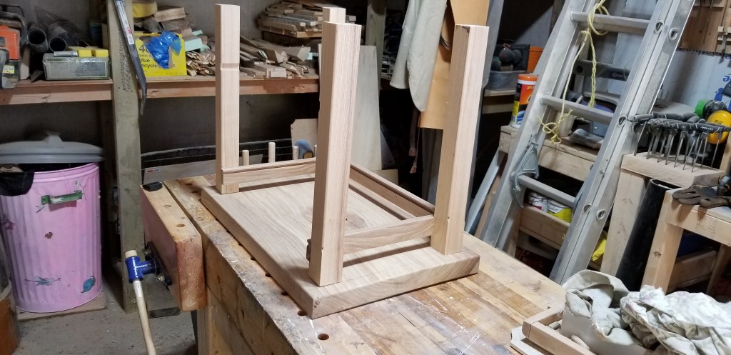 My main focus right now is the structure of my table. I can scale back once I make it to the sanding stage. I am making a point to sand it in pieces prior to assembly & final glue up. I hate having tucked away hard to reach corners, so I’m going to attack each piece by itself. The only part to get stain will be the interior of the drawer, which has a plywood base. Everything else will get a clear coat, to show off the wood. I still have a whole slew of dados to cut for the shelf, and my cross braces are not to thickness yet. I’ll have to run them through the planer a few more times, in order to sneak up on a tight fit.