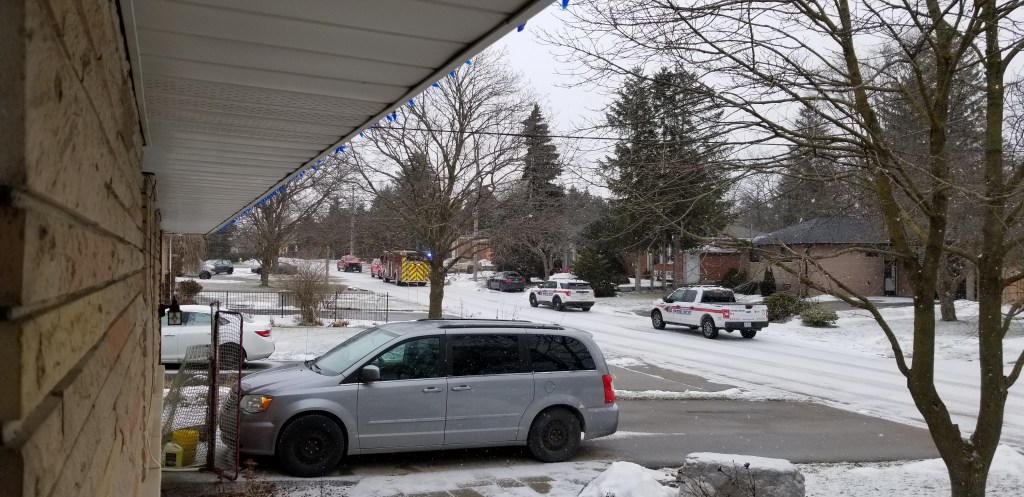 I didn’t use the panorama function so I don’t have a shot with every single vehicle in it. They lined up beyond my house up the street, as well as well below down towards the affected home. For about 90 minutes or so it was a very alive little street.