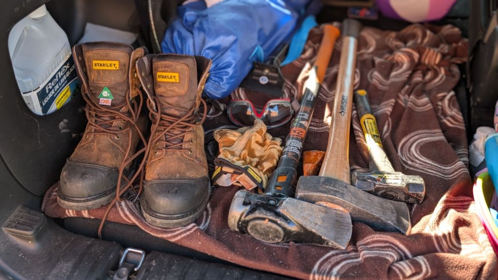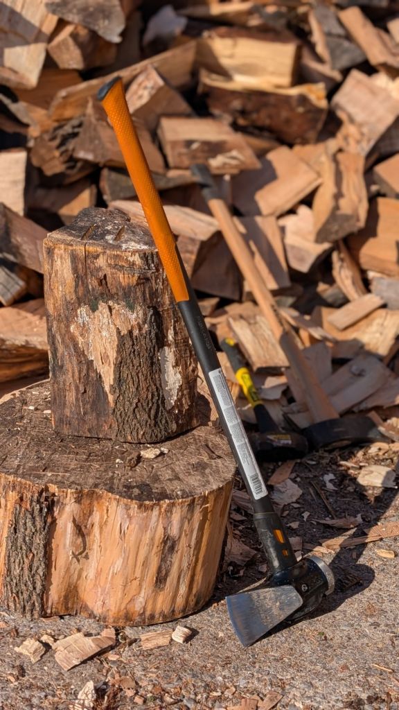 I have suitable boots, gloves, jacket, socks, and goggles for the task. I might think about buying myself a reasonable pair of work pants because the 36’s are falling off me while I work, and the belt isn’t doing much to keep them in place. I should have gone with the 34’s when I bought these pants two or so years ago now. But it looked like my weight was trending upwards fast at that point. I didn’t want to outgrow the waistline while I wasn’t being very active. Now that I climb twice per week, and walk the dog every day, and try to split wood at least three times per week I’m not trending upwards, but I’m also not really losing weight, or inches off my waist, or anything of that sort. I eat like shit, is my problem. But good tasting food is better than being thin feels, so here we are. I suppose suspenders might keep the pants from falling down, whilst simultaneously making me look twenty years older than an I am. So there is that option. Lean into the grey haired look. Ha.