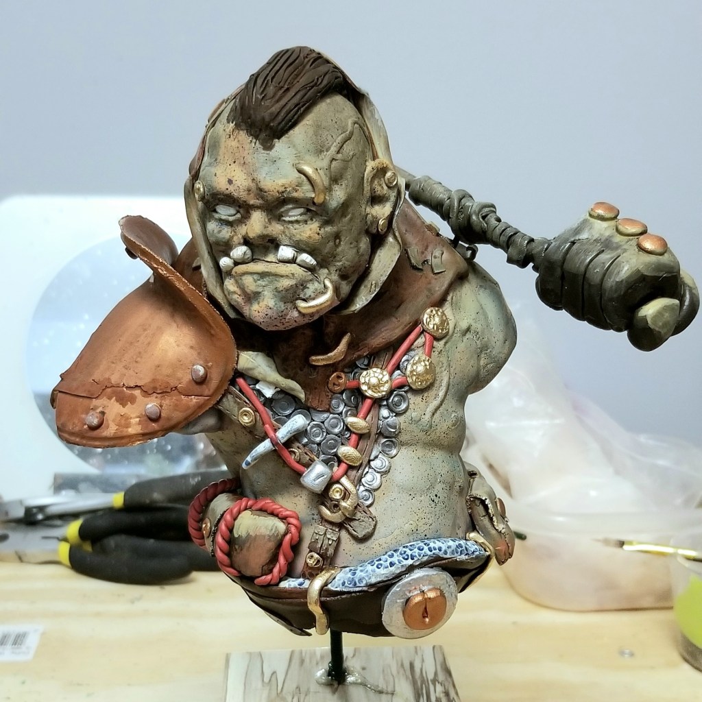 I also have a stock pile of Super Sculpey which I intend to use on a new fair entry. Not all at once. But I have enough I could do four 6-8″ tall busts along the lines of what I usually do. Ogres and beastmen of all types, goblins and gnomes, evil elves, and sailors alike. I have a minotaur that I sight copied from a fantastic sculptor from Greece. Whose name now escapes me. Fantastic sculptor though.