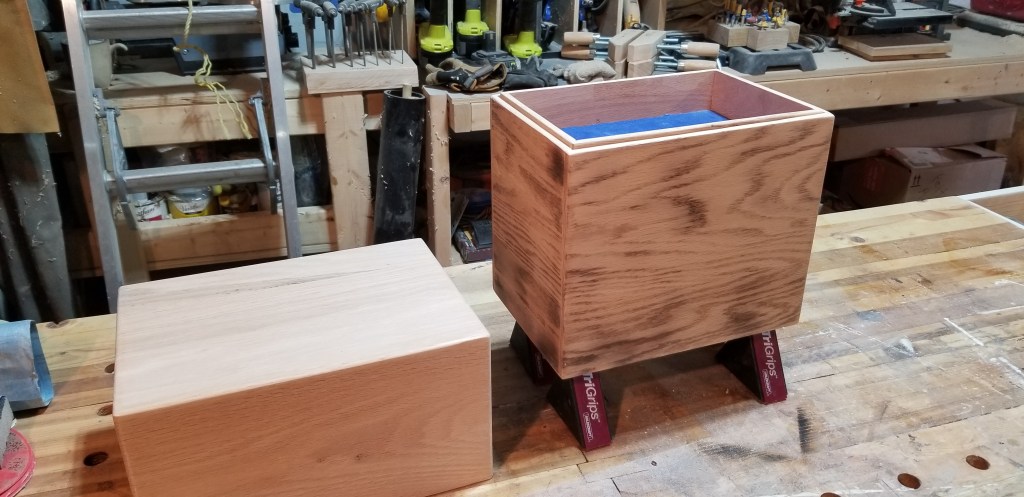 Finishing isn’t exactly my favourite thing to do. It’s sticky, and smelly, and finicky too. My shop doesn’t have an air cleaner, nor do I use anything better than a shop vac to control the dust I make. Not good for high end, ultra high quality finishing. But I get it done regardless. Although now the temperature has plummeted down to minus one, and will go even lower and bring in some snow too. So I don’t know how anybody can plan around this type of thing. Well… a temperature controlled working space would alleviate those stressors, but I ain’t got that kinda dough just lying around for a quirk of mine.